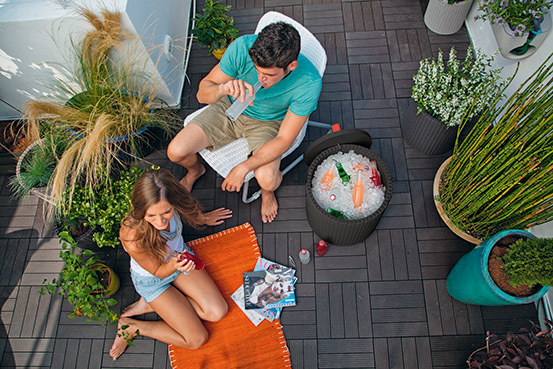 COOL STOOL to bardzo funkcjonalny podręczny stolik z funkcją schowka. Po położeniu poduszki na pokrywie produktu, idealnie sprawdzi się także jako siedzisko. Odporny na działanie niekorzystnych warunków atmosferycznych i promieni UV, łatwy w utrzymaniu w czystości.